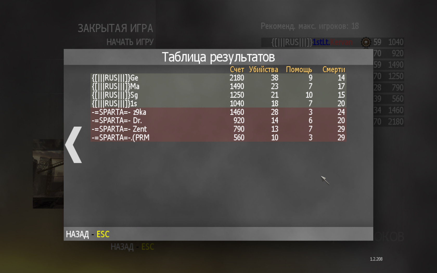 ATTENTION!!! To see the screenshot of the game with the result press in the row "Maps" of the table: + or -, and you will see the screenshot in the window (or a new tab).